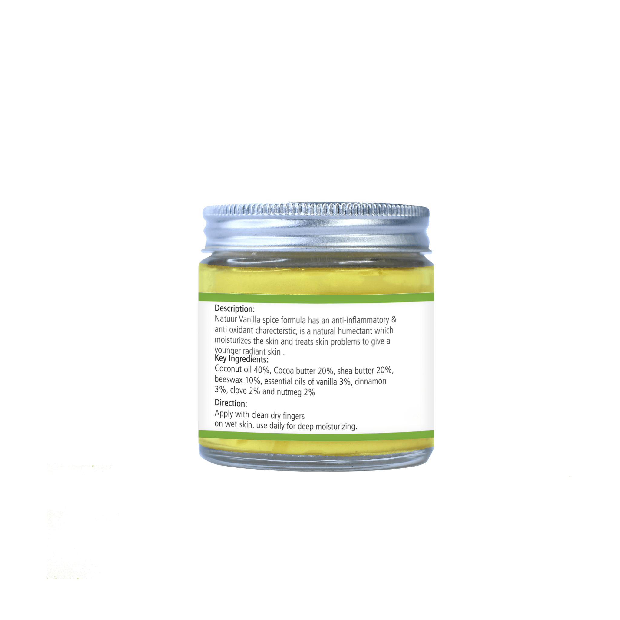 - Luxuriate in the nourishing benefits of Natuur’s Kokum Vanilla Spice Body Butter, infused with natural ingredients like Coconut oil, Kokum butter, Shea butter, and Beeswax.