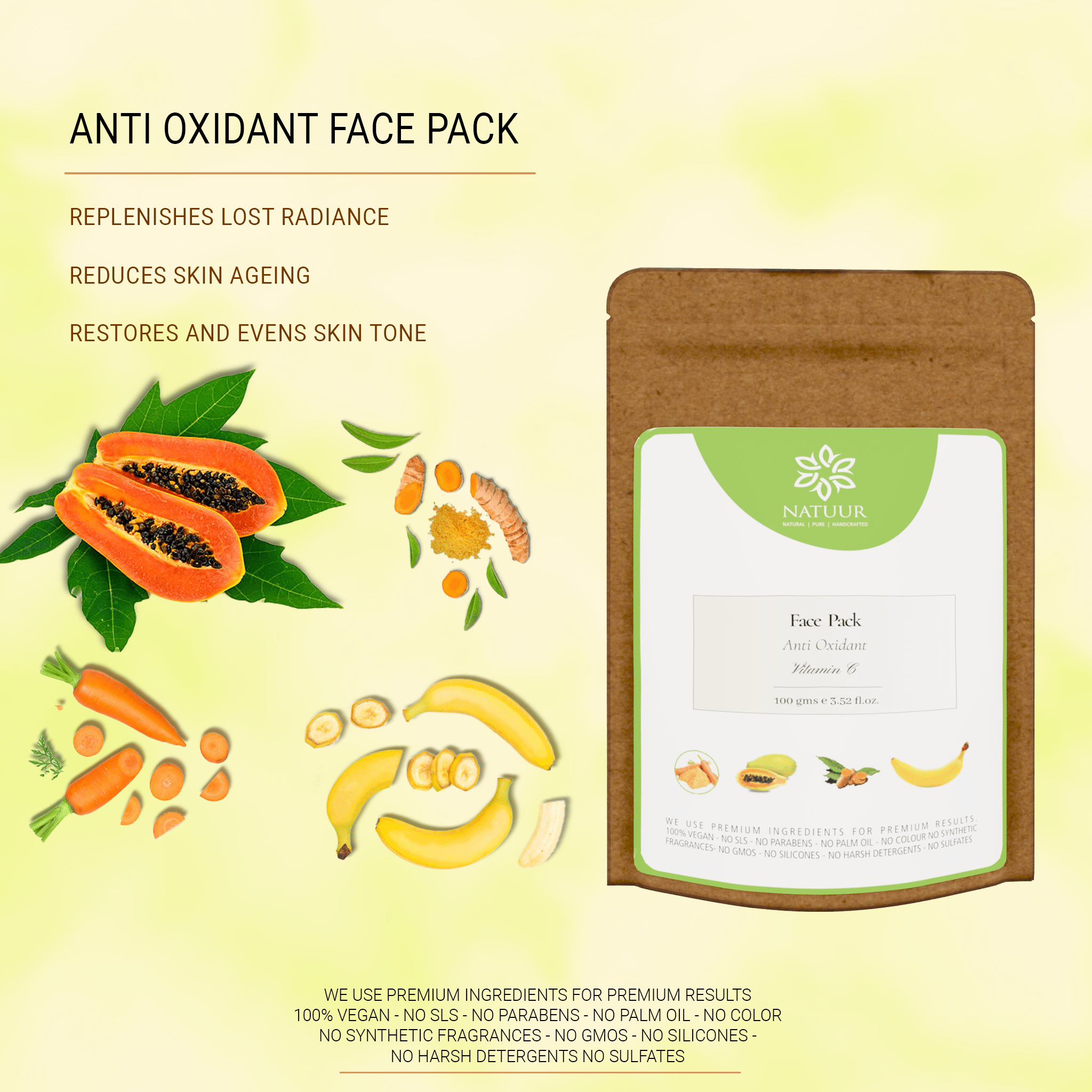 - Natuur’s Vitamin C pack contains carefully selected ingredients like oatmeal, papaya, carrot, and orange peel powder for refreshed and rejuvenated skin.