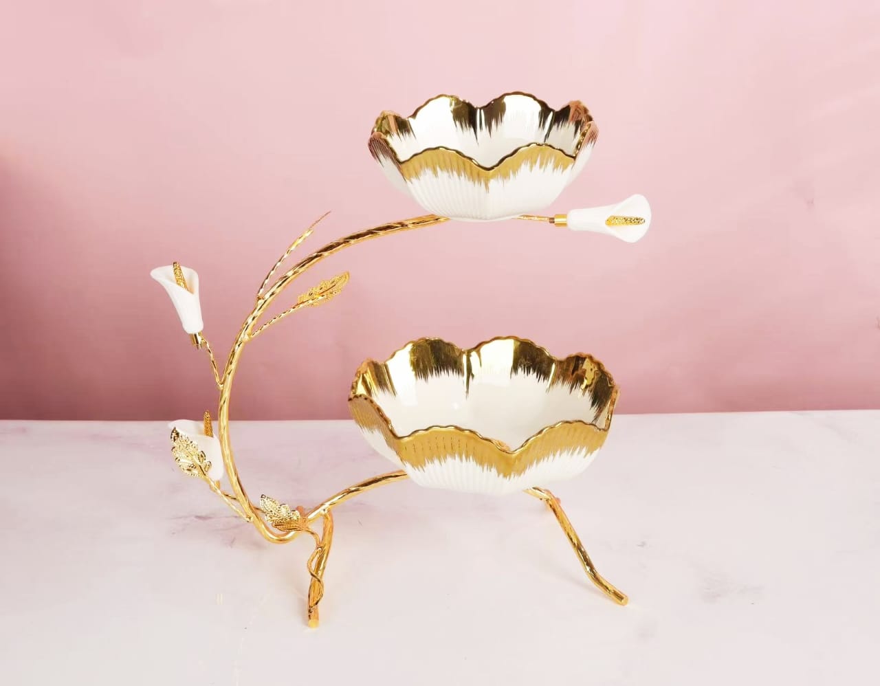 White Gold Ideal Serving Bowls in Stand