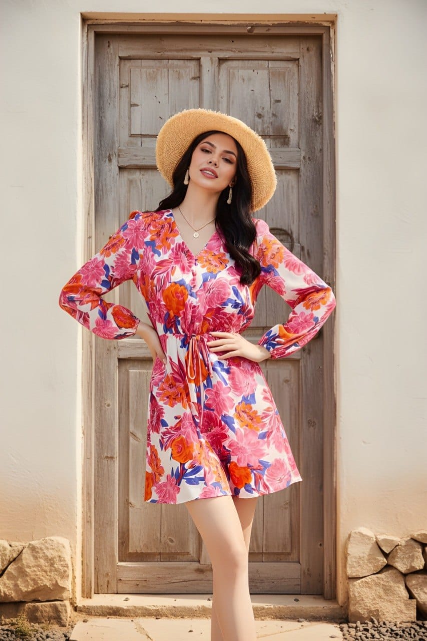 Woman pink Floral Printed dress