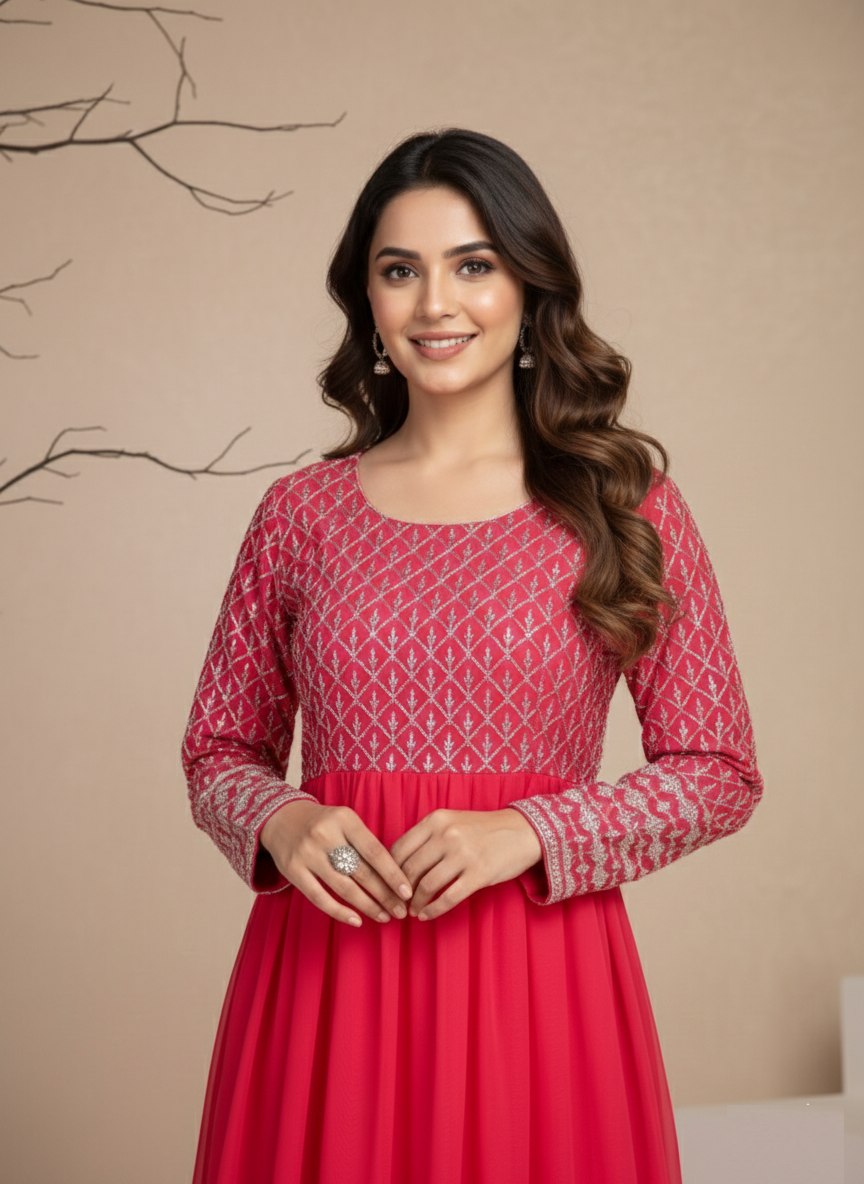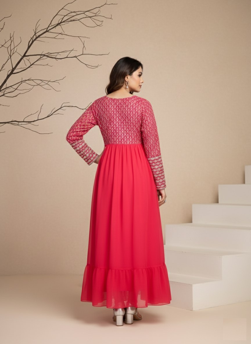 Pink embroidered georgette anarkali gown